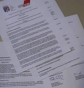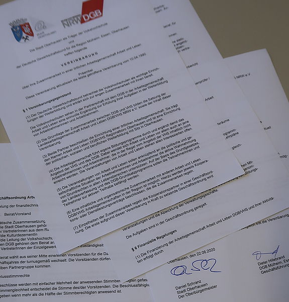 Die Gründung von Arbeit und Leben (DGB/VHS) Oberhausen erfolgte 1972. Der dort geschlossene Vertrag, wurde nach Aktualisierungen am 29.10.1981 und 10.04.1990 jetzt neu geschlossen. Die letzte Aktualisierung und eine neue Geschäftsordnung konnte in der Ratssitzung am 22.6.2020 beschlossen und im Oktober 2020 seitens des DGB MEO, Dieter Hillebrand, Regionsgeschäftsführer und der Stadt Oberhausen, Daniel Schranz, Oberbürgermeister, unterschrieben werden.
