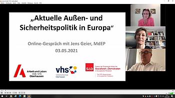 Statt einer Präsenzveranstaltung mit gemeinsamen kontroversen Diskussionen, zeigen wir corona-bedingt alternativ ein Online-Interview mit Jens Geier, Mitglied des europäischen Parlaments für die SPD zur aktuellen Außen- und Sicherheitspolitik in Europa. Jens Geier stellt sich fünf wichtigen Fragen von Gesa Reisz, VHS Oberhausen und Barbara Kröger, Arbeit und Leben DGB/VHS Oberhausen. Den Start macht die Erläuterung der Entscheidungsfindung im Bereich der Außen- und Sicherheitspolitik in Europa. Warum ist die Entscheidungsfindung in Europa manchmal so schwierig? Ein weiterer wichtiger Punkt ist die Flüchtlingspolitik in Europa, die so uneinig ist. Warum werden die Menschenrechte in den Flüchtlingslagern so mit Füssen getreten? Und welche Rolle spielt hier die europäische Agentur für Grenz- und Küstenschutz, Frontex? Viele Menschen beunruhigt auch die "kriegerische" Lage an der Grenze zur Ukraine. Was befürchet die EU, was ist hier die Herausforderung? Und zum Schluß geht es bei der Flüchtlingsfrage noch einmal um das Impfen als Teil des Schutzes von Flüchtlingen. Globale Herdenimmunität kann nicht durch nationalen Egoismus entstehen. Welche Haltung und welches Handeln verfolgt hier die EU?