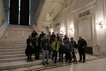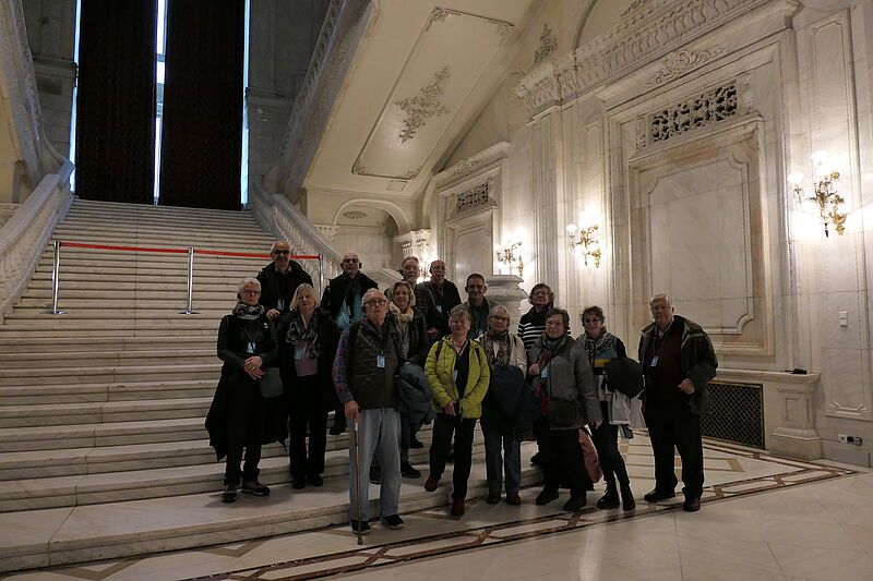 Auf die Reise nach Bukarest, der Hauptstadt Rumäniens, machten sich vierzehn interessierte Erwachsene und erlebten viele Gegensätze von Stadt und Land, von gut situiert bis bettelarm, von der Verarbeitung des Kommunismus bis hin zum Leben in der Moderne, im Hier und Jetzt. Die Reise umfasste sowohl Einblicke in die Vergangenheit mit dem Haus des Volkes, Ceausescus Wohnhaus und seinem Einfluss auf den Städtebau, als auch die Kultur der Kirchen. Neben der Vergangenheit galt der Blick den Arbeitsbeziehungen, dem Leben und Alltag in Stadt und Land, den verschiedenen Regionen in der Walachei und Siebenbürgen und vielen Informationen zu den Regeln im Land betreffend Gesundheit, Steuern, Rente, Bildung, Poltik und vieles andere...