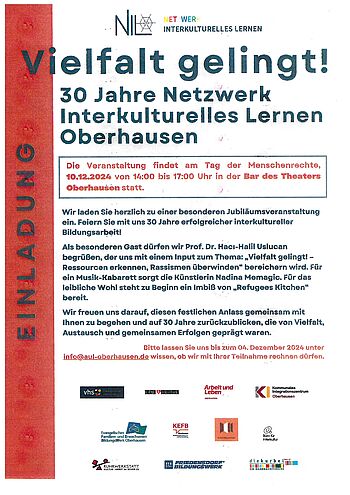 Unsere besondere Jubiläumsveranstaltung des Netzwerk Interkulturelles Lernen findet in der Bar des Theaters Oberhausen statt. Uhrzeit: 14:00 bis 17:00 Uhr.