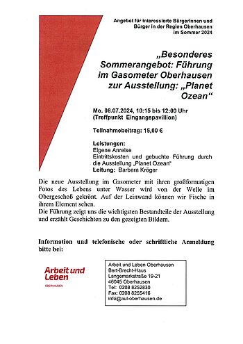 Ort: Gasoemter Oberhausen, Arenastraße 11, 46047 Oberhausen; eigene Anreise; Treffpunkt vor dem Eingangspavillion