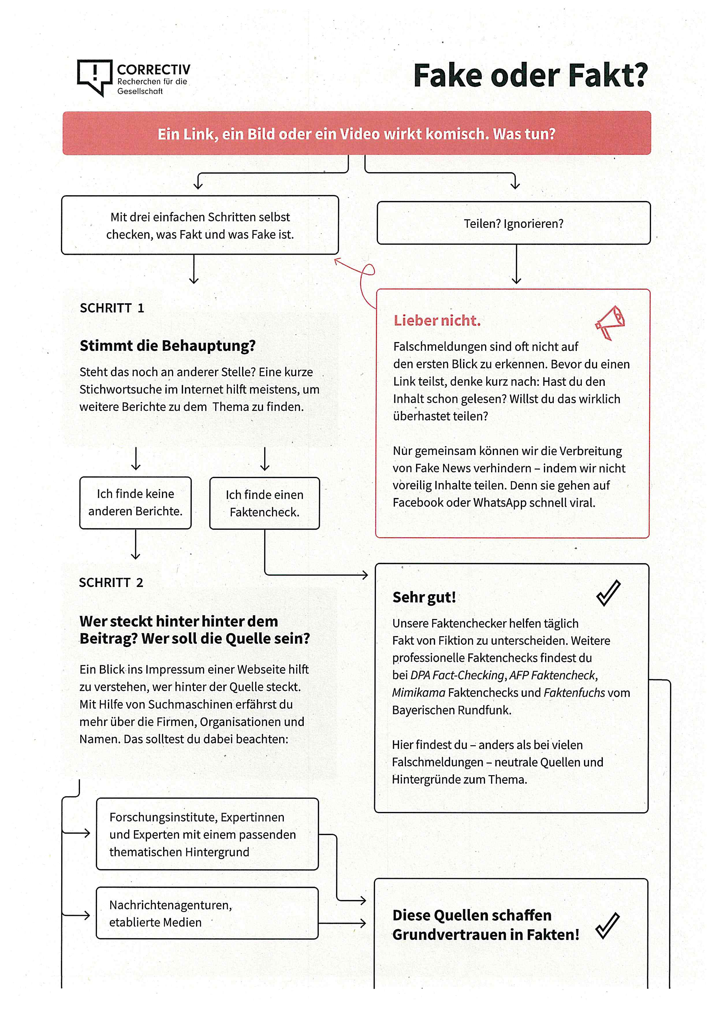 Fake News können Wahlen beeinflussen. Man kann sich davor gemeinsam schützen. Correctiv, das Recherche-Netzwerk aus Essen, hat die wichtigsten Tipps und Tricks zusammen getragen. Fake oder Fakt?